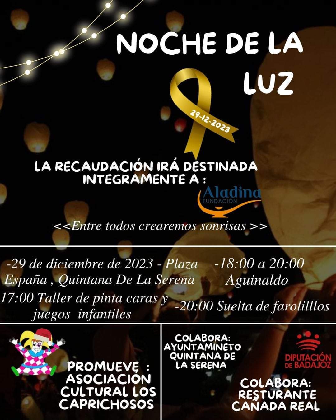La Asociación Cultural 'Los Caprichosos', con la colaboración del Ayuntamiento de Quintana, han llevado a cabo el acto que se llevará a cabo el día ... 29 de diciembre en la Plaza de España, con el objetivo de recaudar todo lo posible para la fundación Aladina.