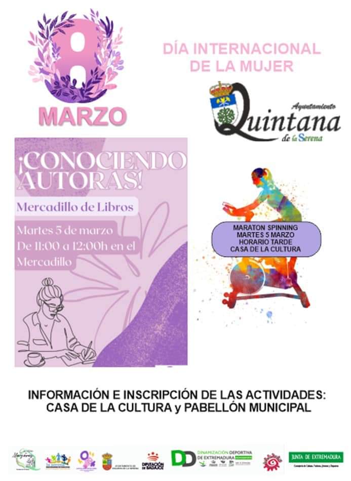 El Ayuntamiento de Quintana ha publicado hoy lo que será la programación del martes 5 de marzo por el Día Internacional de la Mujer. Esta ... incluye una oferta cultural y deportiva con dos actividades.