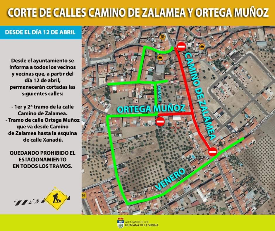 El Ayuntamiento de la localidad ha informado del corte de las calles Camino Zalamea y Calle Ortega Muñoz desde el día 12 de abril.