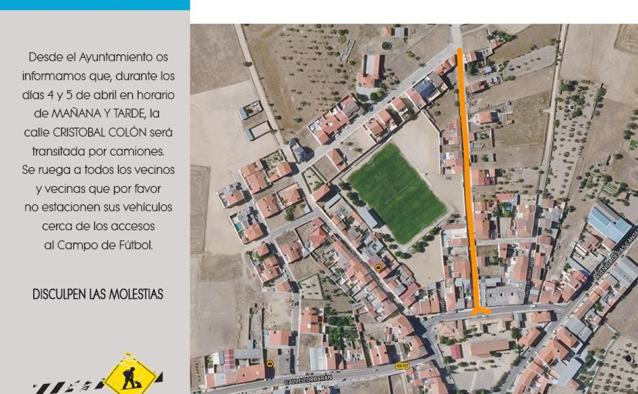 Esto se debe a las obras que se están llevando a cabo en el campo de fútbol municipal, por ello piden a los vecinos de la zona que no aparquen sus vehículos en las calles de acceso al campo para no interrumpir el tránsito de los camiones.