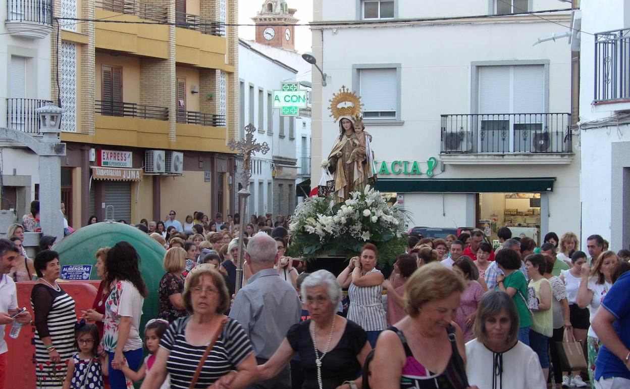 El recorrido, como ya es tradición, se extendió desde la puerta de la parroquia hasta el final del Camino de Zalamea. «Tras llegar al término de la calle, cuando nos dispusimos a bajar las vecinas habían preparado a mitad del camino de regreso una mesa, donde la virgen descansó y hubo dulces y refrescos para todos», explicó el párroco de la localidad, Antonio Nogales.