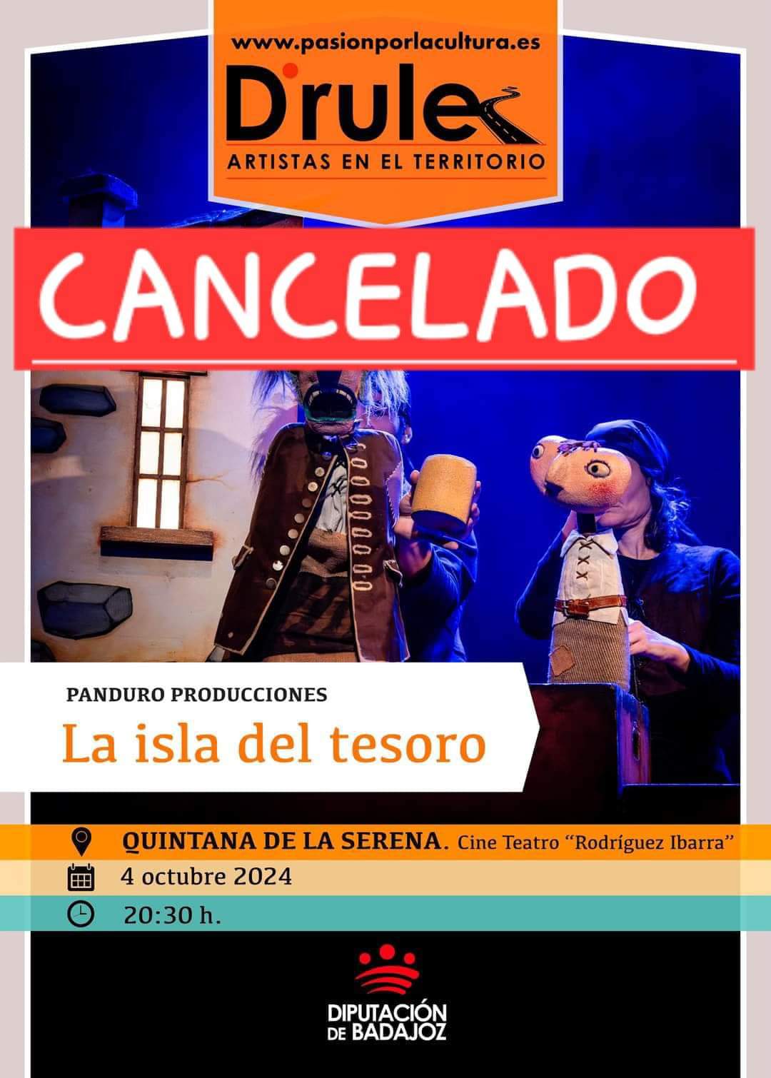 El Ayuntamiento de Quintana anunció, a través de RRSS, el malestar y descontento con la compañía teatral 'Panduro Producciones', responsable de la obra 'La Isla ... del Tesoro', proyectada el viernes 4 de octubre en el Cine Teatro Rodriguez Ibarra.