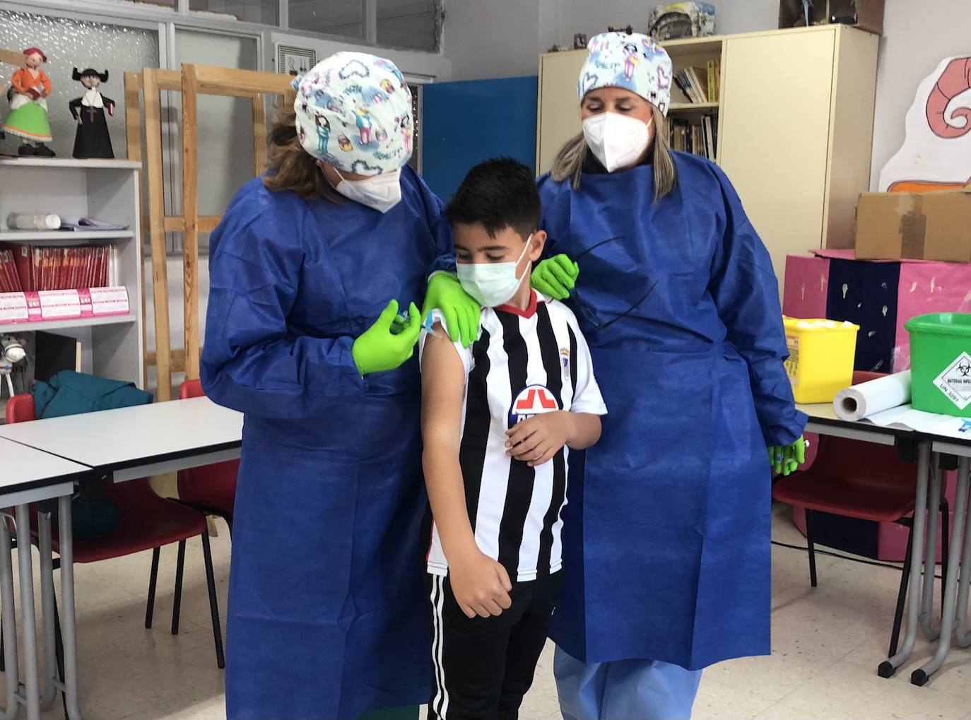 La segunda dosis la recibirán en 8 semanas con la paradoja de que aquellos niños que en ese tiempo cumpla los 12 años, recibirá la dosis completa de adultos, y no la tercera parte como hoy.