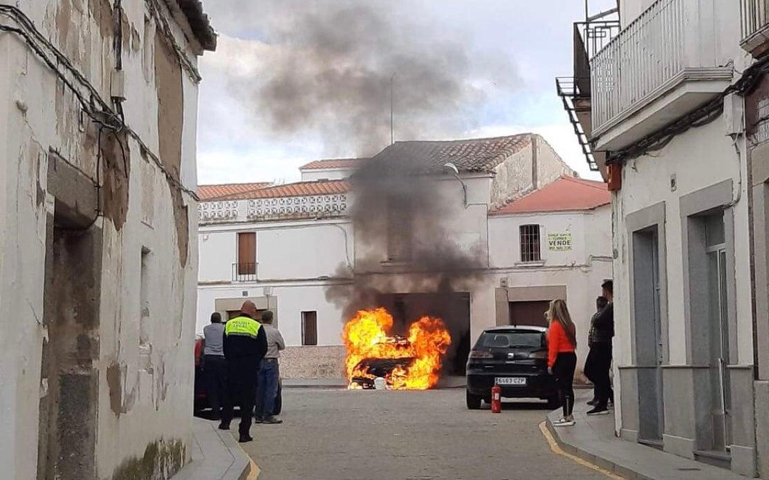 Hasta el lugar de los hechos se ha desplazado también una dotación de bomberos del parque de Castuera que han logrado extinguir el fuego sin que afectara a viviendas o garajes colindantes.