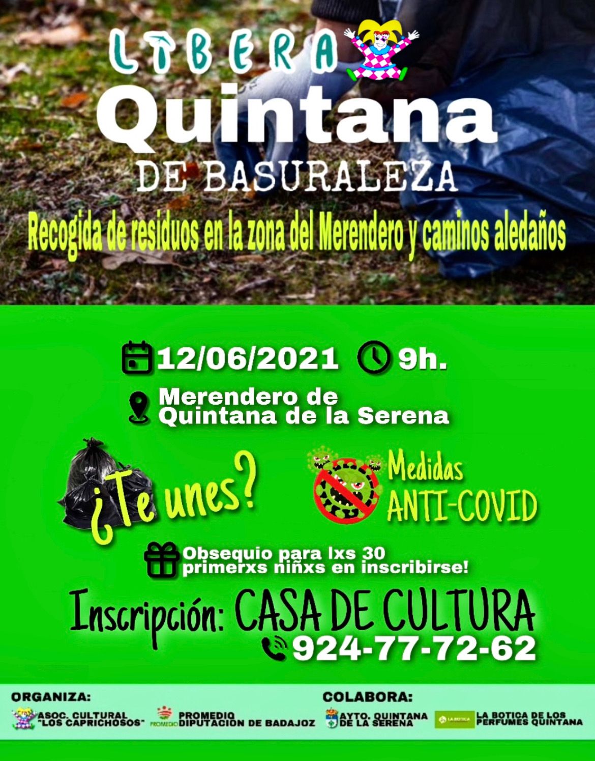 La comparsa 'Los Caprichosos' en su afán por seguir activos a través de acciones en la localidad, ha organizado una recogida de residuos en colaboración con la Diputación de Badajoz, a través de Promedio.
