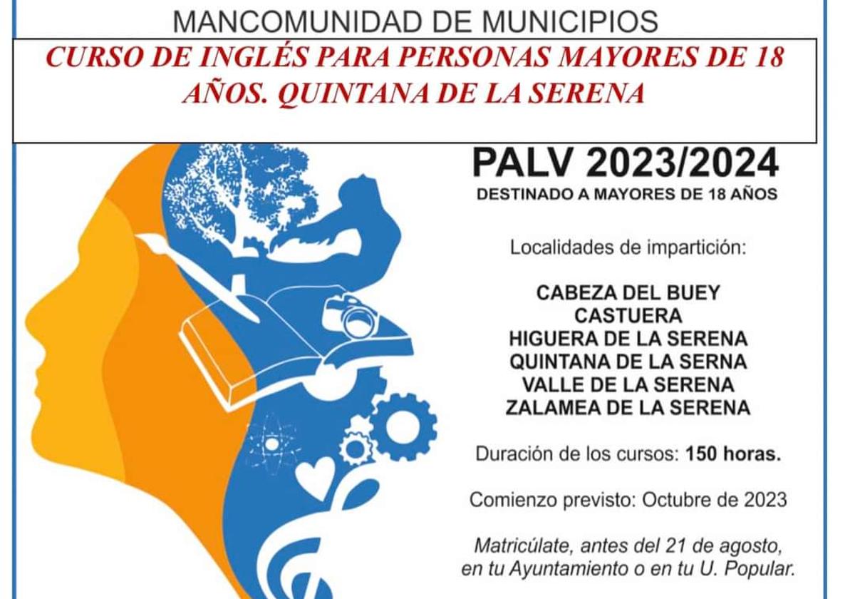 La Universidad Popular de Quintana oferta un curso de inglés para personas mayores de 18 años de manera gratuita. La duración del curso es de 150 horas y el comienzo de la impartición del curso está previsto para el próximo mes octubre.
