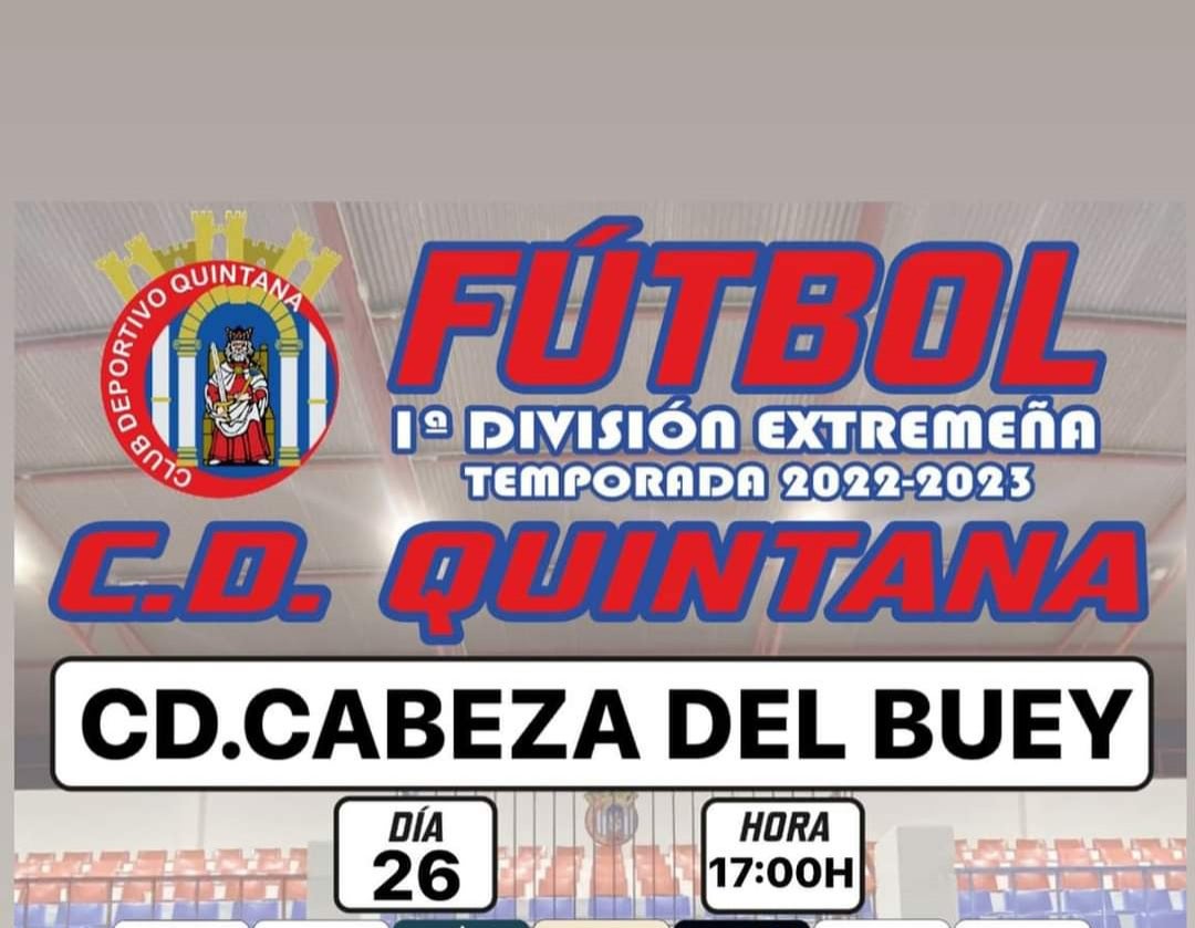 El CD Quintana no para y tras superar con comodidad el domingo 12 al CD Valdehornillos por 1-5 a domicilio, vuelve al Municipal de Quintana para disputar la jornada 18 frente al CD Cabeza del Buey, con el objetivo de sumar tres importantes puntos que le permita asentarse en la cuarta posición de la tabla clasificatoria.
