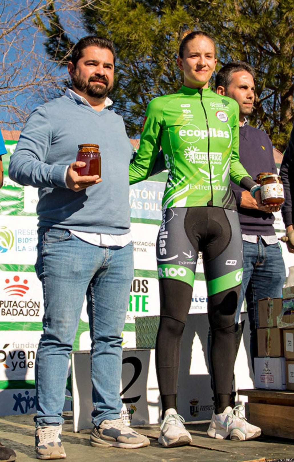 El pasado 5 de febrero, en la localidad de Fuenlabrada de los Montes, la corredora sub23 del Extremadura-Ecopilas y natural de Quintana, María Reyes Murillo, logró un cómodo triunfo, no sin exprimirse a lo largo de un trazado bastante exigente. Acompañaron en el podium final la montijana Tamara Sánchez (GR100) y la ganadora de la crono ayer, Sheila Gallardo (Panter Bike), demostrando ser las tres mejores del Maratón de la Miel.