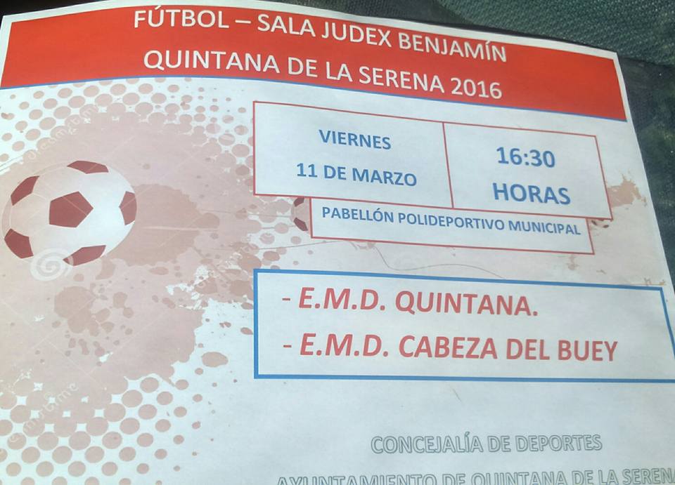 El equipo de fútbol sala de la Escuela Municipal de Deportes (E.M.D.) benjamín de Quintana se enfrentará este viernes, 11 de marzo, a ... la E.M.D. Cabeza del Buey.