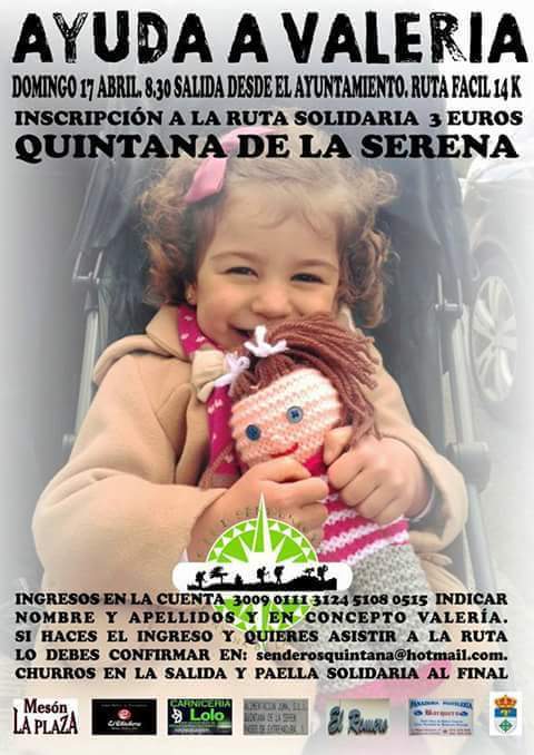 El club senderista de Quintana de la Serena celebrará el próximo domingo, 17 de abril, una ruta solidaria de ayuda a Valeria.