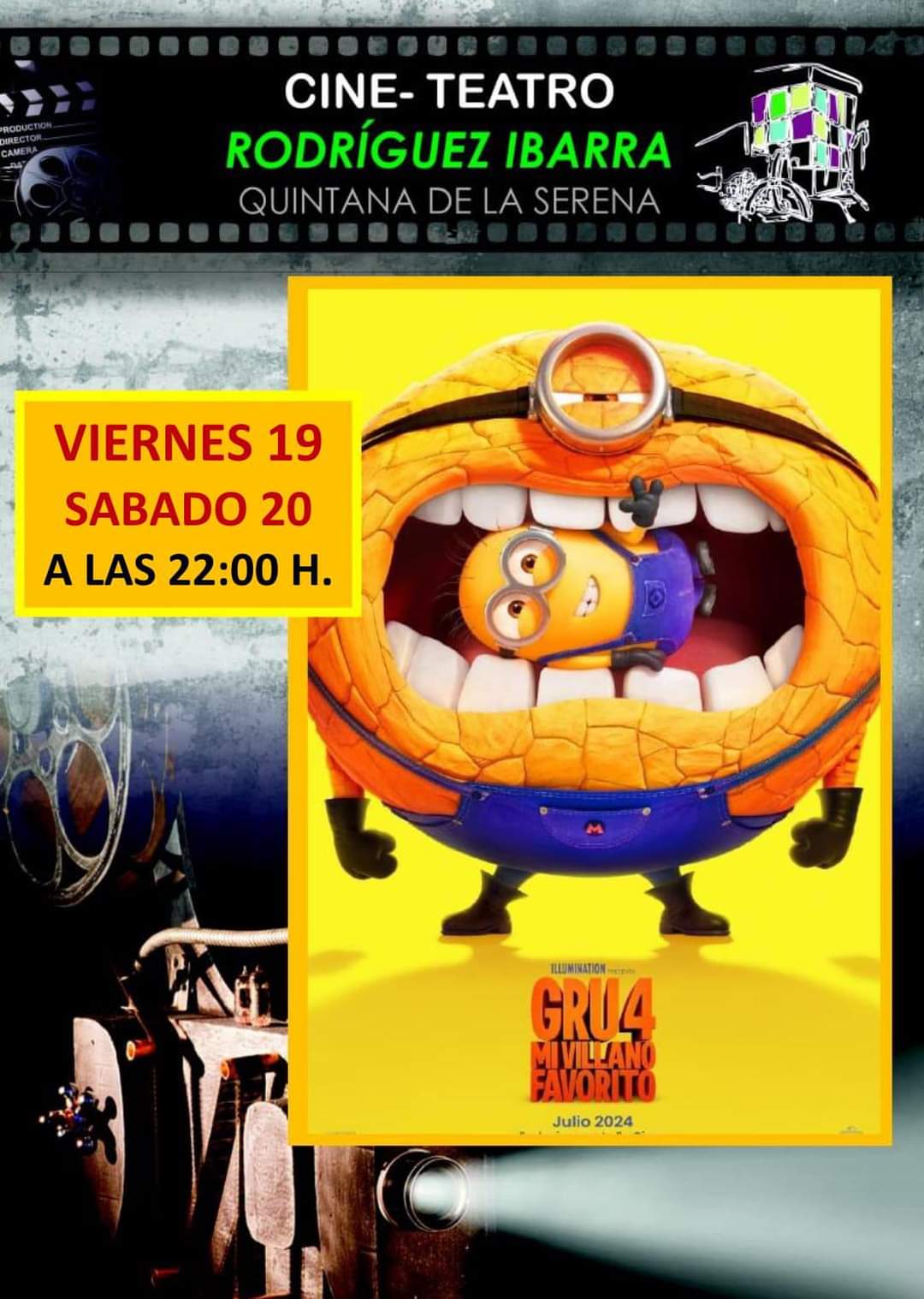 'Gru 4, Mi villano favorito', la última gran producción cinematográfica infantil a escala internacional, podrá verse este viernes 19 y el sábado 20 de ... julio en el cine teatro Rodriguez Ibarra.