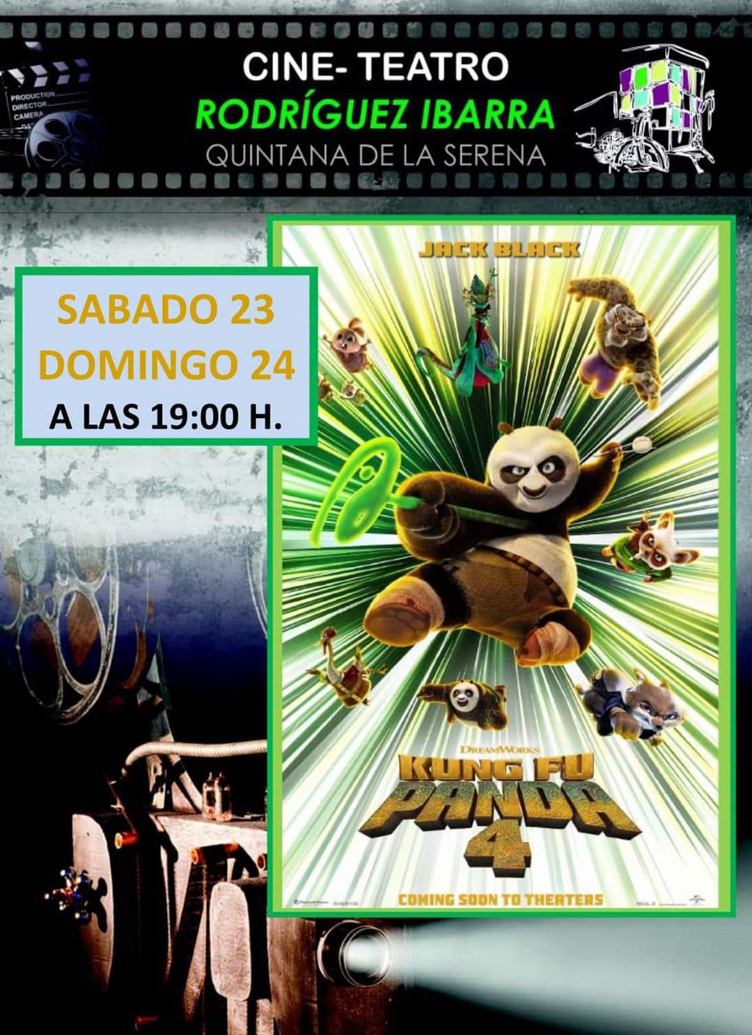«Kung Fu Panda 4», la última gran producción cinematográfica a escala internacional sobre cine para los más pequeños, podrá verse el próximo sábado 23 ... y domingo 24 de marzo en el Cine Teatro Rodriguez Ibarra.