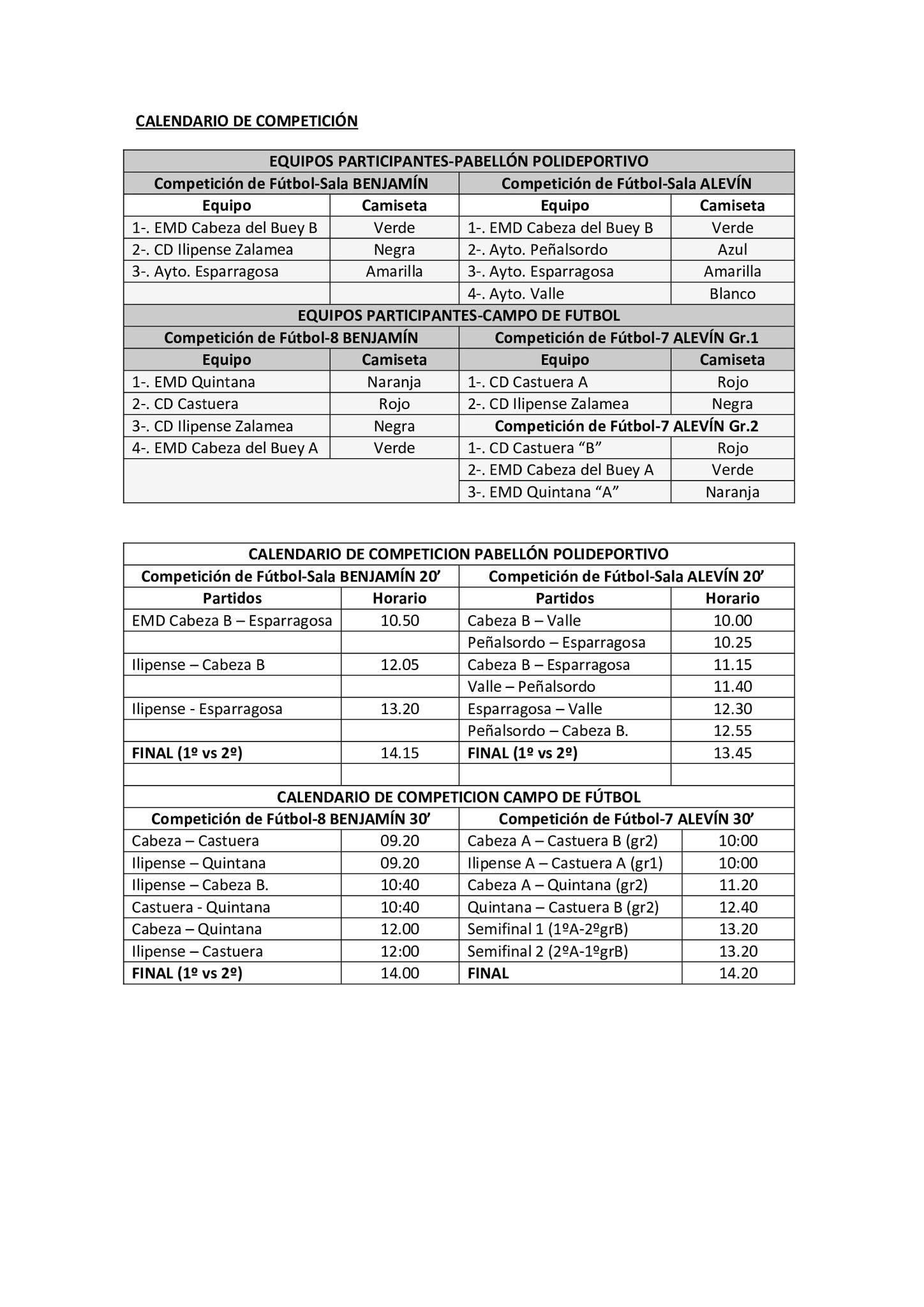 La Mancomunidad de La Serena ha anunciado a través de RRSS el horario del torneo que se llevará a cabo el próximo 23 de diciembre ... en la localidad de Zalamea, en el Estadio Baltasar Pérez.