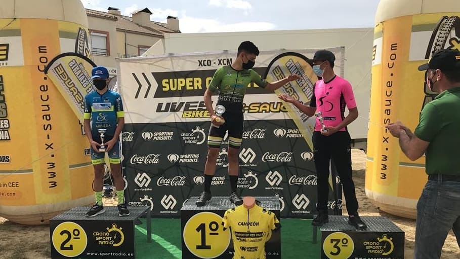 Los ciclistas del equipo cadete 'Quima Proingo' de la Escuela Ciclista de Quintana no se bajan del podio. Algunos de logros más reseñados se han dado recientemente durante los meses de primavera. El último tuvo lugar el pasado domingo cuando David Vizcaíno, cumpliéndose todos los pronósticos, se proclamó de la Super Cup Xsauce en la última prueba del campeonato celebrada en la localidad madrileña de Alpedrete. «Este logro es muy importante porque ha sido la primera carrera BTT finalizada este año y se viene para nuestra localidad», informa el entrenador, Juan Manuel Mera.