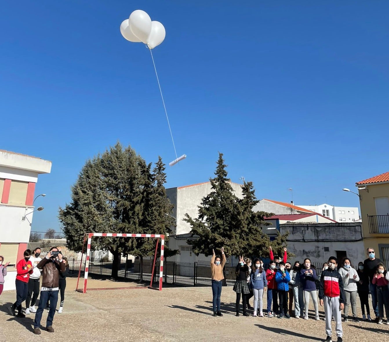 Además, también en todas las clase se escribió un mensaje en un globo que después lanzaron al cielo. «Tanto los globos como las cuerdas son biodegradables y la intención es que si alguno lo encuentra en otro punto del planeta se ponga en contacto con nosotros para saber que lo ha recibido», declara el director del colegio, Juan Luis López.