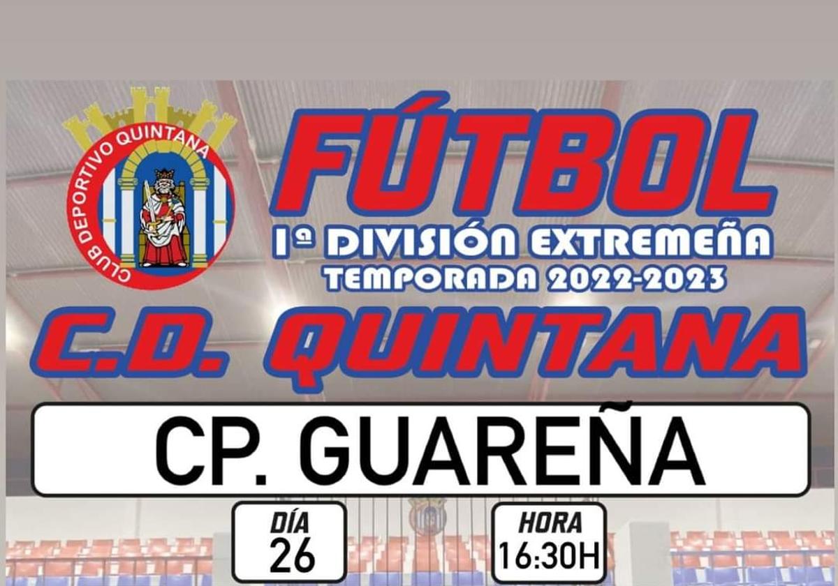 Horario confirmado para el encuentro del CD Quintana ante el CP Guareña