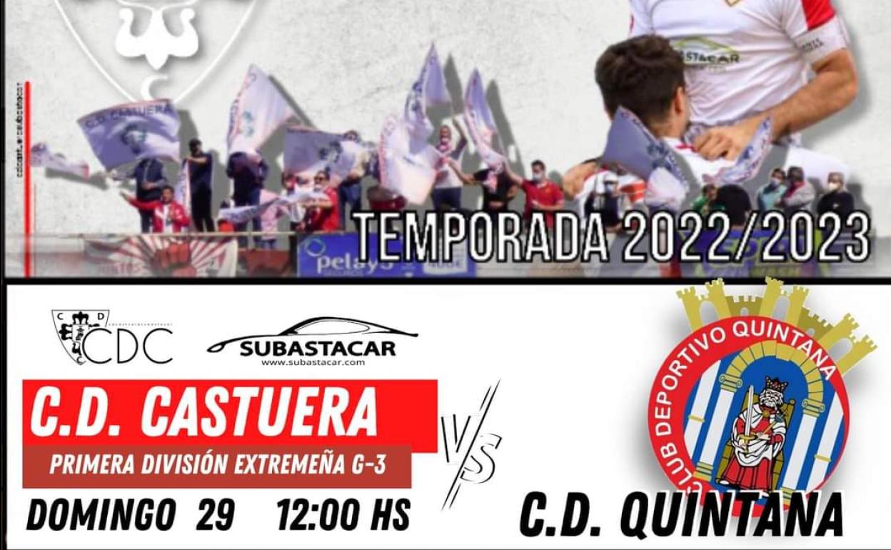 El próximo domingo 29 de enero, el CD Quintana se desplaza a la localidad de Castuera, para disputar la jornada 15 del campeonato de liga regular de Primera División Extremeña. El horario será a las 12:00 horas en el Estadio Manuel Ruiz.