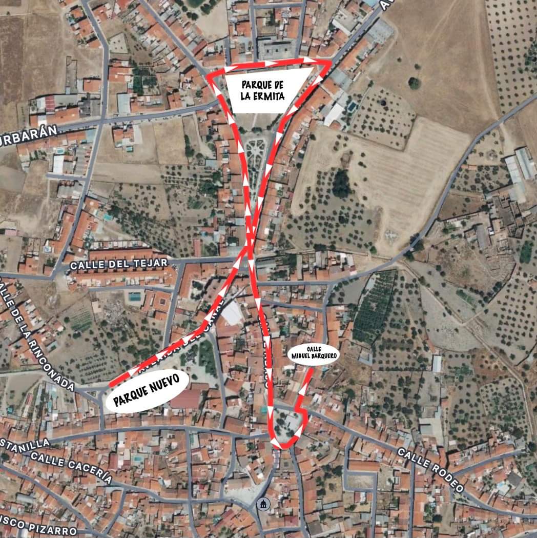 Esta tarde las agrupaciones recorrerán las calles de la localidad en un trayecto que partirá del Parque Nuevo. Tras recorrer la Avenida del Canal, Plaza de la Ermita, Calle Abajo, Parque Hernán Cortés, para finalizar en la calle Miguel Barquero.