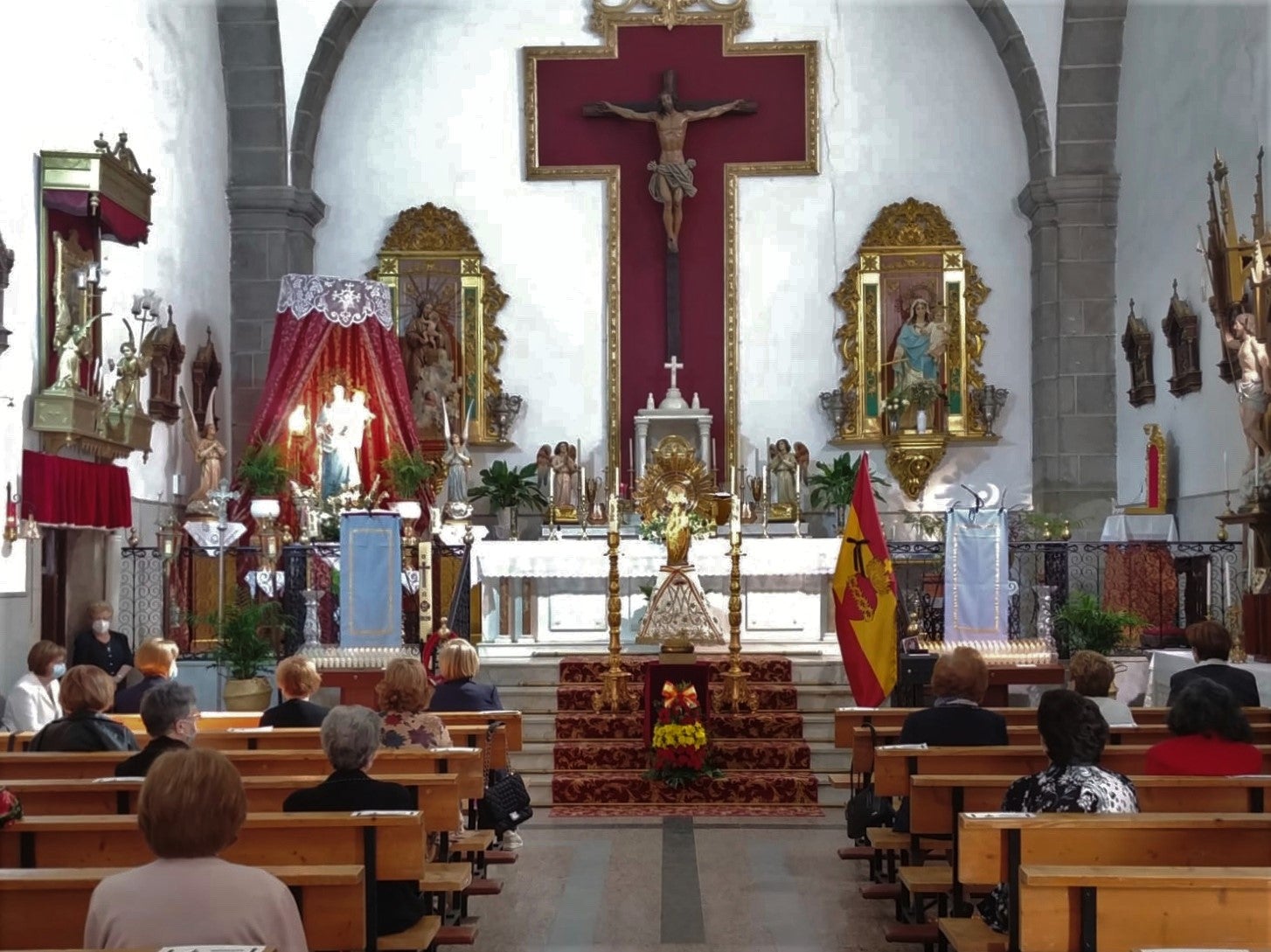Esto se ha hecho para garantizar la seguridad de los asistentes y por el cumplimiento de las medidas de distanciamiento social, puesto que en los bancos del templo están marcados los sitios que cada persona debe ocupar respetando el aforo permitido.