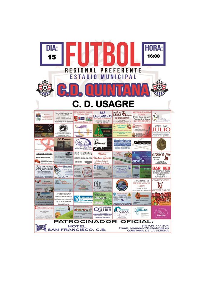 El Club Deportivo Quintana se enfrentará hoy domingo al C.D. Usagre.
