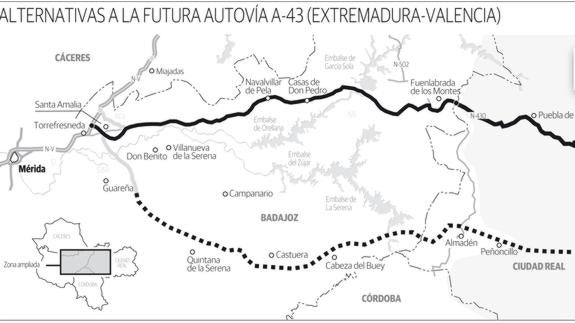 Indignados. Así aseguran estar los empresarios de la comarca de la Serena después de tener conocimiento de que el Ministerio de Fomento ha rectificado sus ... últimos planes y ahora está sopesando hacer la Autovía del Levante (A-43) siguiendo el trazado de la N-430, por Herrera del Duque. Hasta ahora la documentación que estaba elaborando el Gobierno de España contemplaba que el recorrido era la llamada opción sur; esto es, por Castuera y Cabeza del Buey.