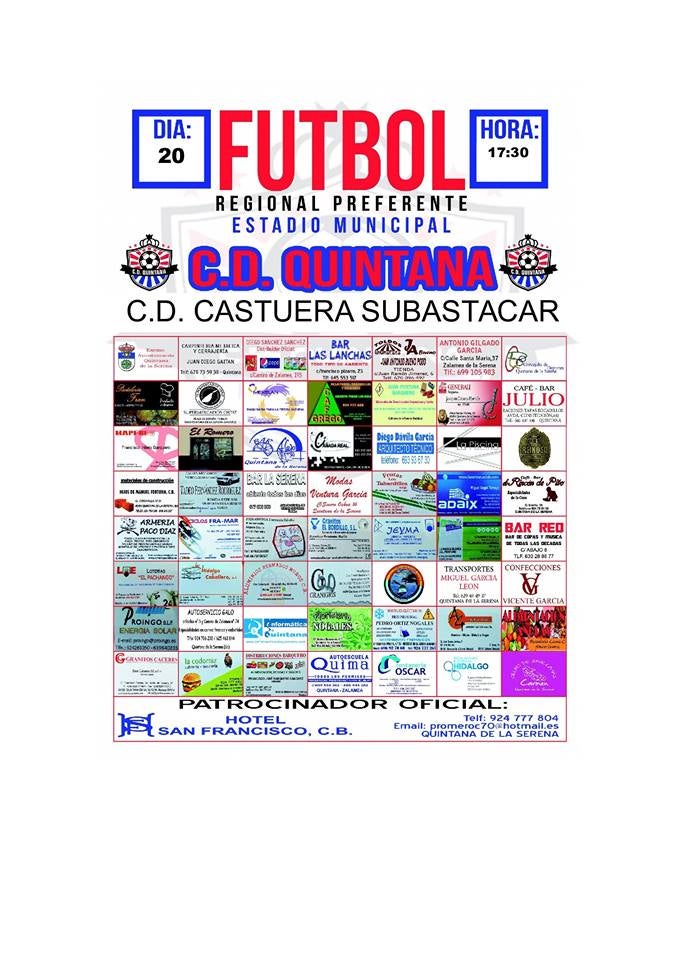 Nuevo derbi serenense para el próximo domingo, 20 de marzo, dado que el Club Deportivo Quintana se enfrentará en casa al Club Deportivo Castuera-Subastacar.