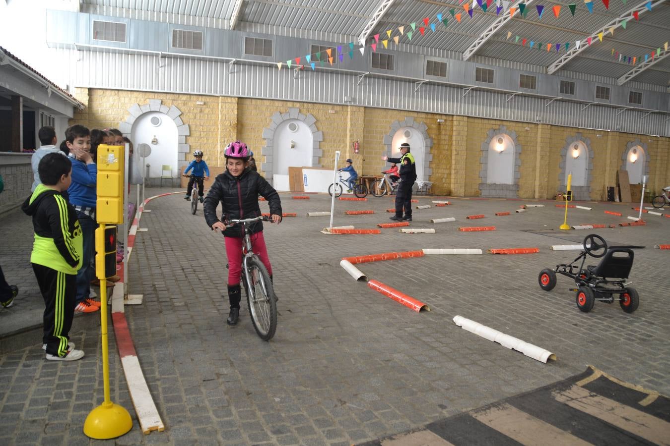 En la práctica de manejo de bicicleta y conocimiento de seguridad vial fue desarrollado en la carpa municipal en un circuito adoptado para la ocasión, en la que la mayoría de los participantes acudieron con sus propias bicicletas.