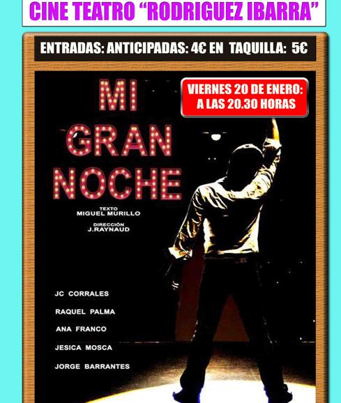 El próximo 20 de enero a partir de las 20:30 horas el cine teatro Rodríguez Ibarra acogerá Mi Gran Noche uno de los musicales ... de moda. El espectáculo de EX3 producciones está basado en la trayectoria profesional del artista Raphael, cuya composición musical está a cargo de J.Raynaud con el texto de Miguel Murillo.