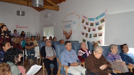 El acto comenzó con la intervención de la presidenta de La Asociación de Familiares de Personas Enfermas de Alzhéimer y Otras Demencias AFAD Recuerda Extremadura, Matilde Escobar, mostrando su agradecimiento al Consistorio, a las empresas privadas que colaboran y en especial a las familias. «Nos facilitan enormemente la labor que se realiza en este centro, sin su ayuda no sería posible». Por ello, entregaron un obsequio al Ayuntamiento con una foto de los usuarios y una mención honorífica «debido a su permanente atención y su predisposición por colaborar».