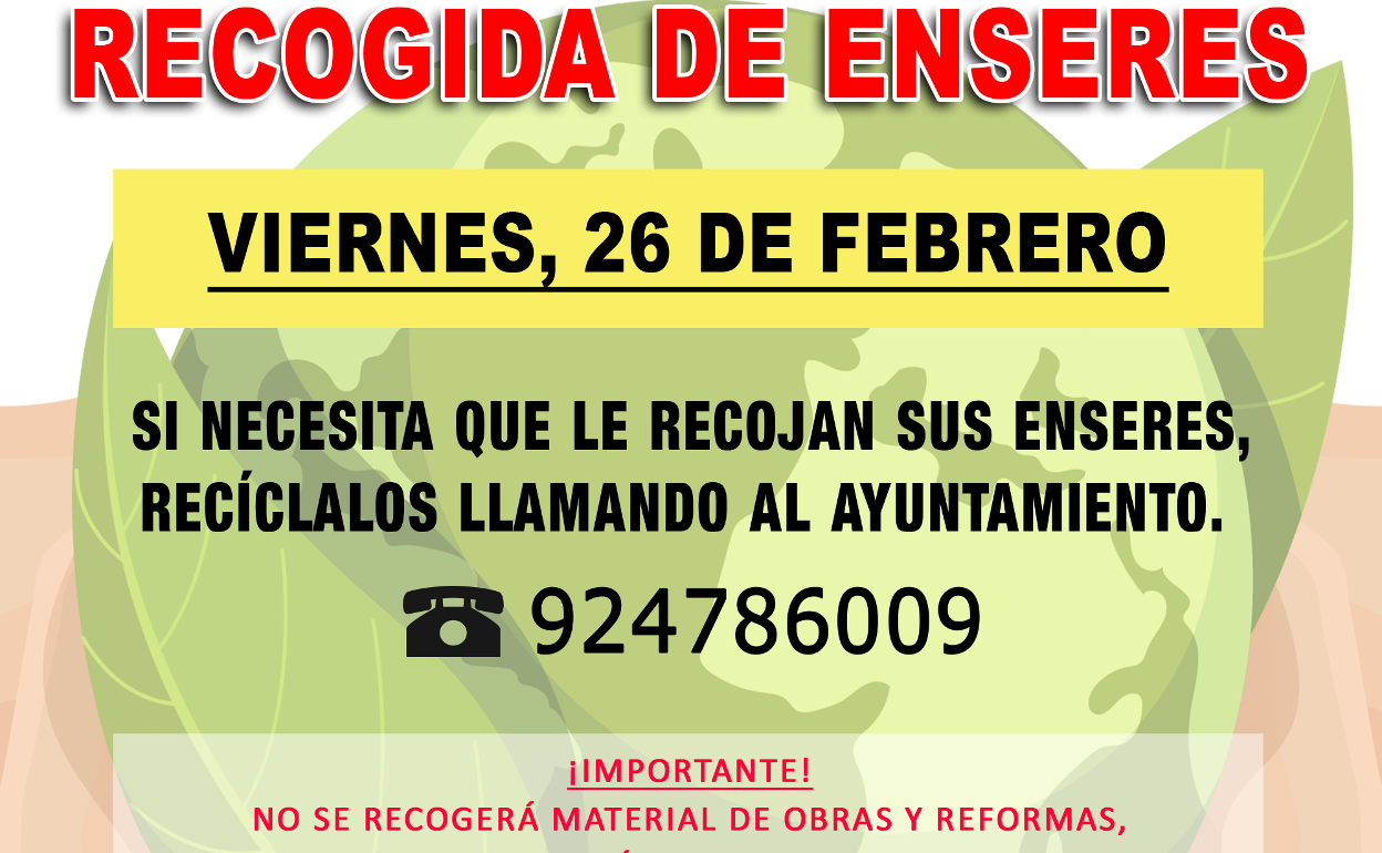 El viernes 26 de febrero el camión de la mancomunidad de municipios de La Serena pasará por la localidad para prestar un nuevo servicio de recogida de enseres
