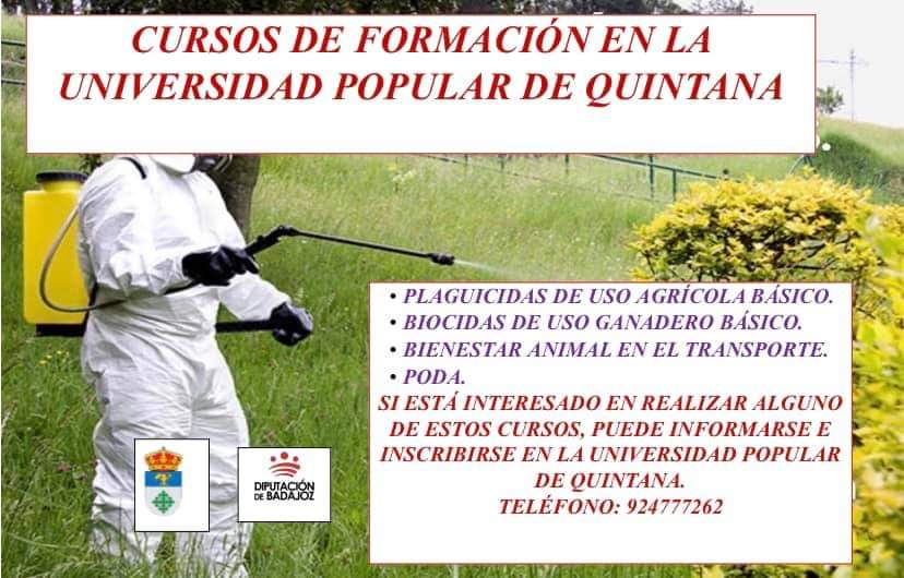 Desde la Universidad Popular de Quintana está trabajando en la organización de diferentes cursos. Se han ofertado tres cursos diferentes, que son de Plaguicidas de uso agrícola básico, Biocidas de uso ganadero básico y de Bienestar animal en el transporte, y por último, de Poda.