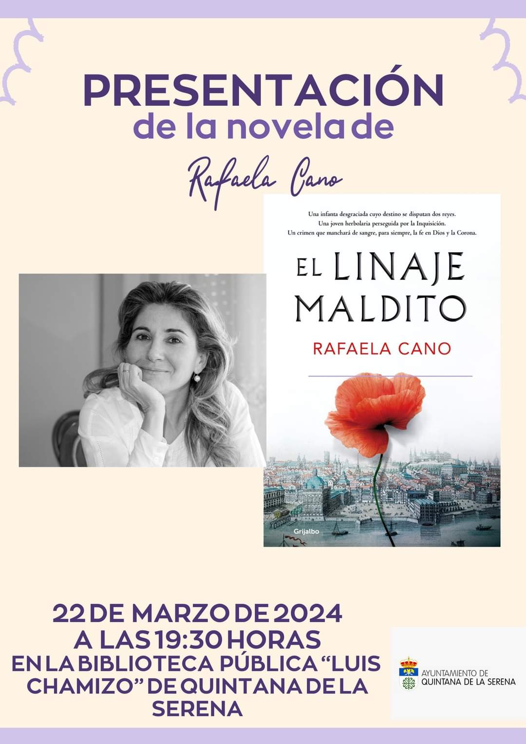 Dentro de las actividades propuestas por la concejalía de Cultura del Ayuntamiento de Quintana , se encuentra la presentación de la última novela 'El linaje maldito' ... de la reconocida autora Rafaela Cano.