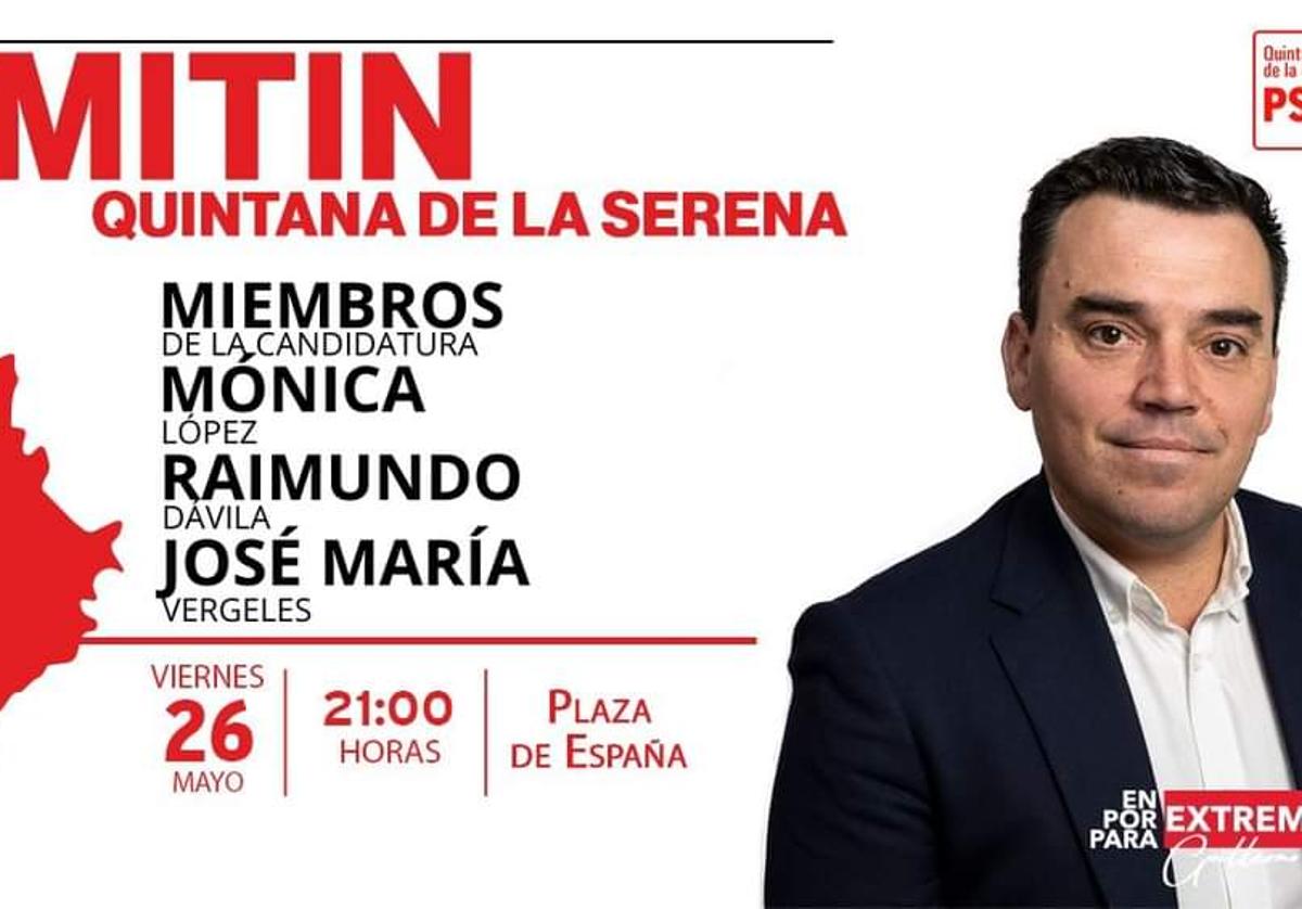 El partido socialista de Quintana celebra el viernes 26 de mayo un mitin último de campaña de cara a las elecciones municipales y regionales del ... próximo domingo 28 de mayo.