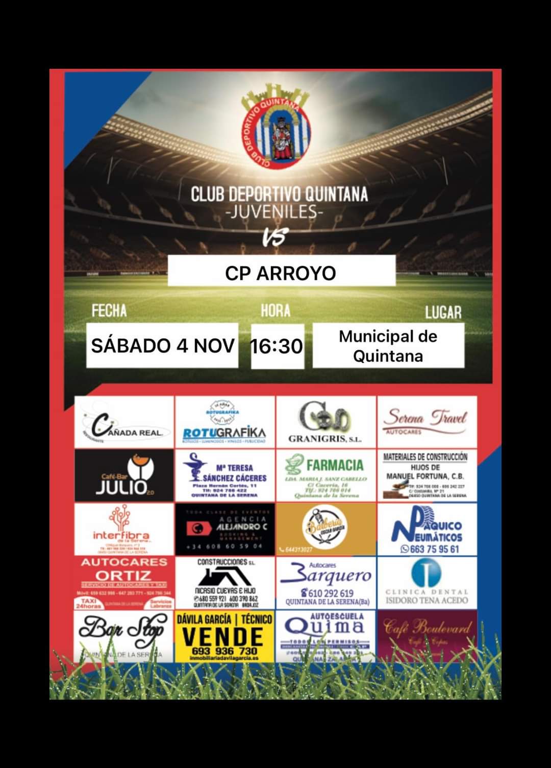 El CD Quintana Juvenil recibe al CP Arroyo en el Municipal de Quintana