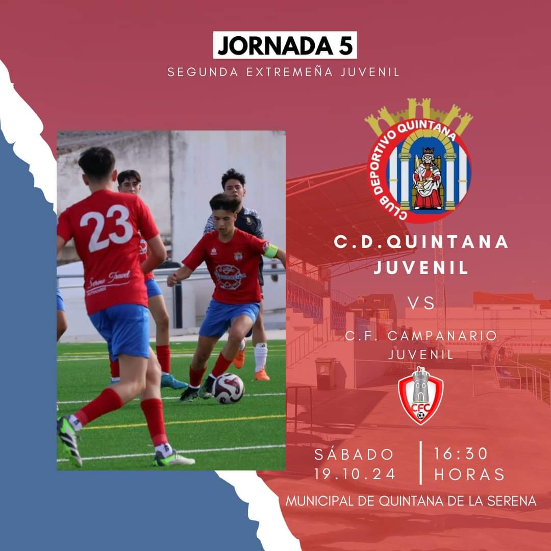 En la tarde del sábado 19 de octubre, el CD Quintana juvenil recibe al CF Campanario, en el segundo encuentro como local del conjunto quintanense.