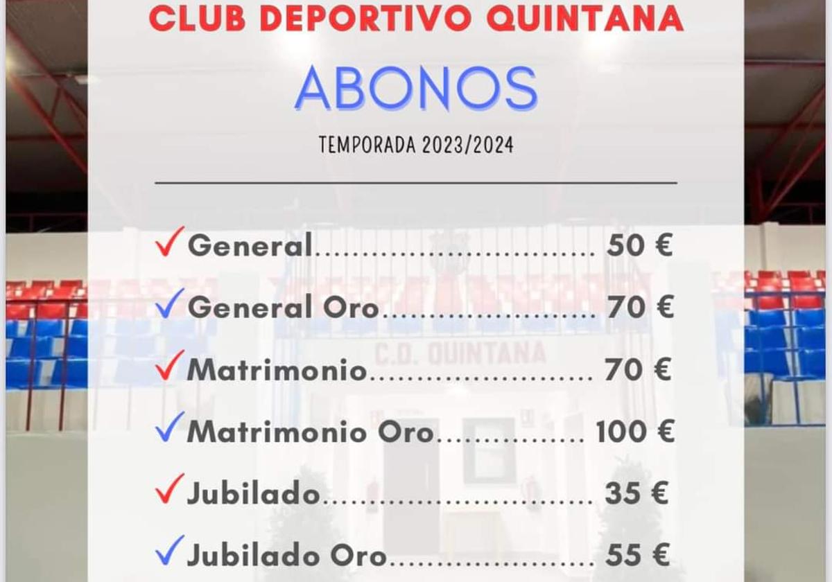 El CD Quintana se encuentra ya centrado en configurar la próxima temporada. Además de anunciar alguna renovación, también han puesto ya a la venta los abonos para la campaña 2023-2024.