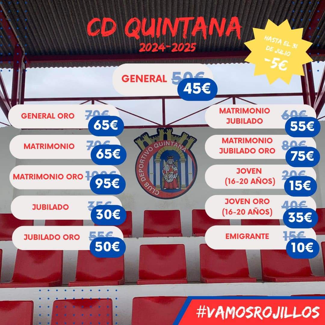 El CD Quintana se encuentra ya centrado en configurar la próxima temporada. Además de anunciar alguna renovación y fichaje, también han puesto ya a la ... venta los abonos para la campaña 2024-2025.