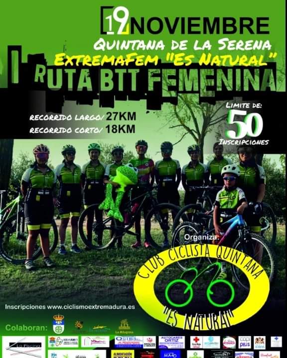 La Extremafem 'Es natural' que organiza el Club Ciclista «Quintana es Natural» el 19 de noviembre, teniendo la prueba 50 plazas iniciales para los interesados.