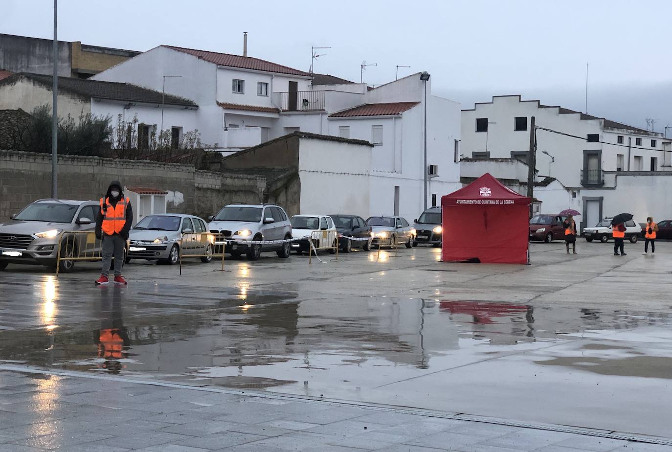 Hoy vuelto a activar el dispositivo en la carpa con la colaboración de los voluntarios de Protección Civil que son los encargados, como en anteriores ocasiones, de coordinar la entrada y salida de coches.