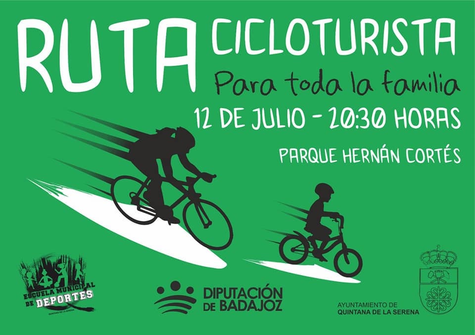 Con el objetivo de fomentar el deporte en familia, desde la concejalía de Deportes del Ayuntamiento de Quintana han organizado para esta tarde, 12 de julio a las 20.30 horas una ruta cicloturista por la localidad. La inscripción será gratuita 15 minutos antes de comenzar.