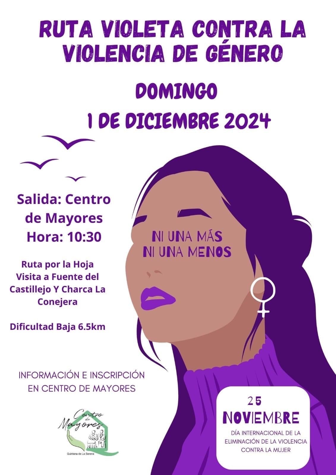 El Centro de Mayores de Quintana, con motivo del Día Internacional contra la eliminación de la Violencia de Género, ha anunciado la ruta violeta.