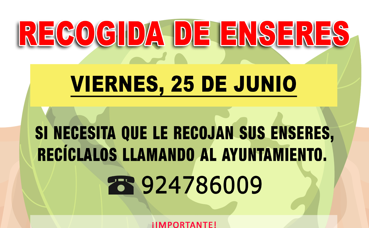El viernes 25 de junio el camión de la mancomunidad de municipios de La Serena pasará por la localidad para prestar un nuevo servicio de recogida de enseres