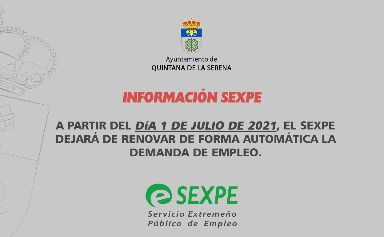 El SEPXE dejará de renovar de manera automática la demanda de empleo a partir del próximo 1 de julio.