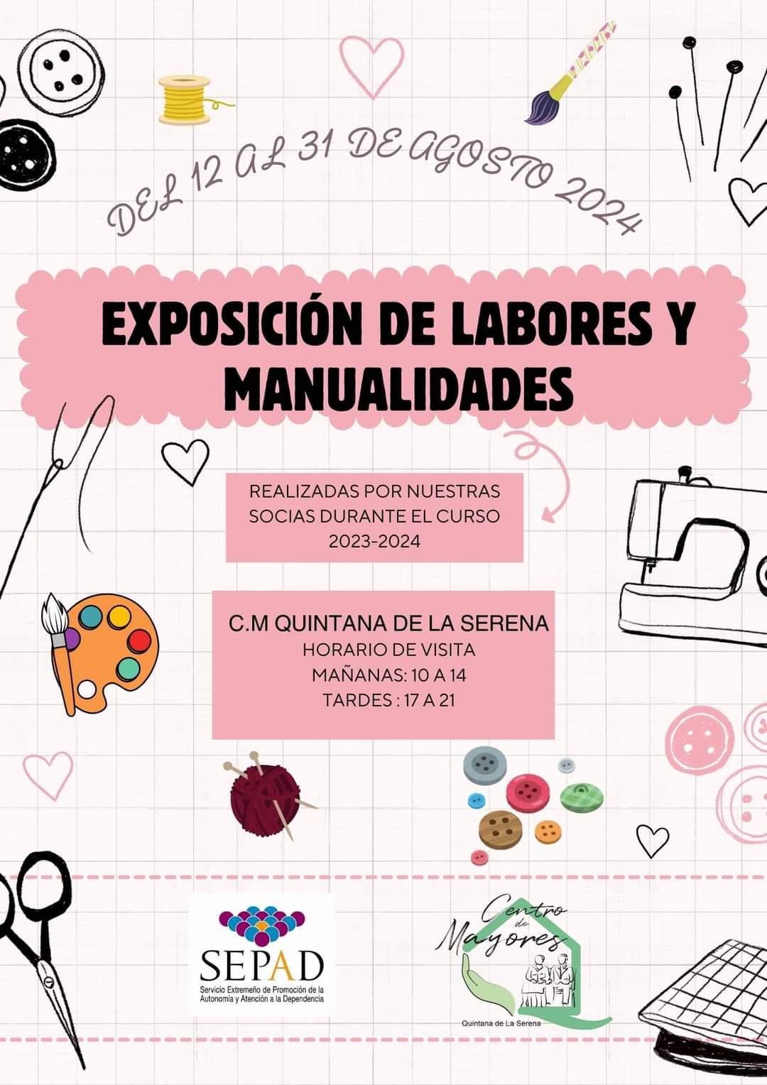 'Exposición de labores y manualidades', es el nuevo taller que llega a Quintana a través del Centro de Mayores de la localidad, teniendo algunos ... usuarios interesados la oportunidad de disfrutar de dicho curso, el cual comenzará el 12 de agosto, finalizando el último día del mes.
