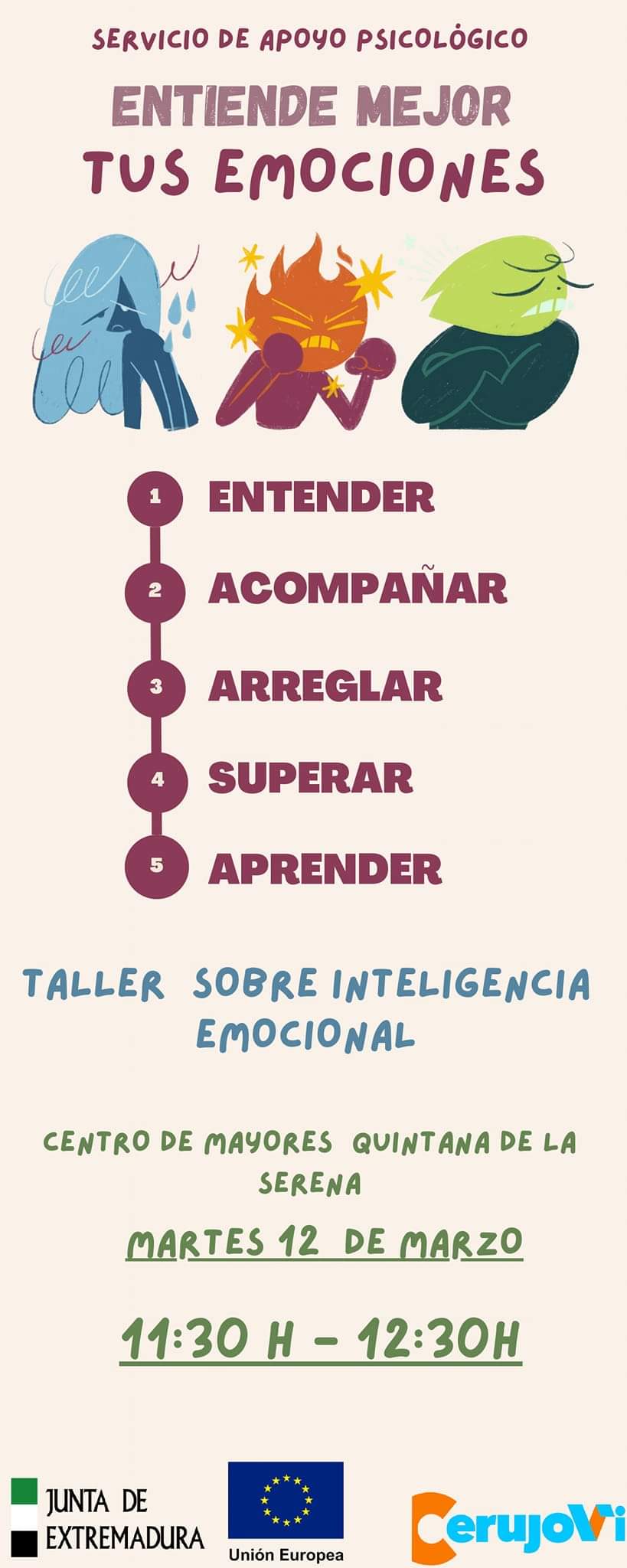 Entiende mejor tus emociones, es el nuevo curso que llega a Quintana a través del Centro de Mayores de la localidad, teniendo algunos usuarios interesados ... la oportunidad de disfrutar de dicho curso, el martes 12 de marzo a partir de las 11.30 horas, siendo la duración de la sesión de una hora.